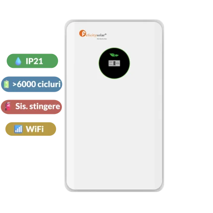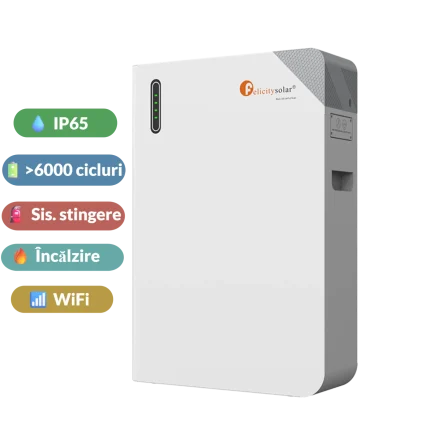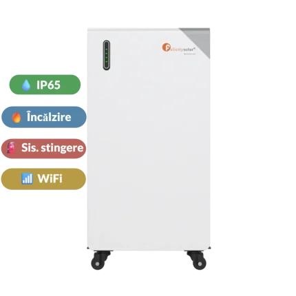 7,999.00 lei (TVA 21% inclus)Baterie Felicity Solar 16kWh FLB48314TG1-H LiFePO4 51.2V IP65 cu WiFi si sistem stingere incendii + incalzire + Cabluri + Roti